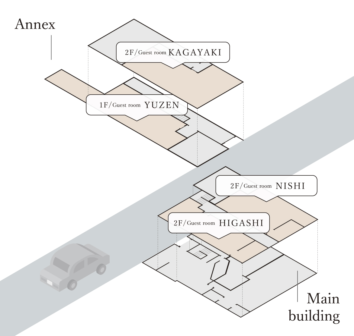 In HIGASHI room, we offer bathtub from AXA SOFTBATH where you will be enjoying the ultimate bath experience.
